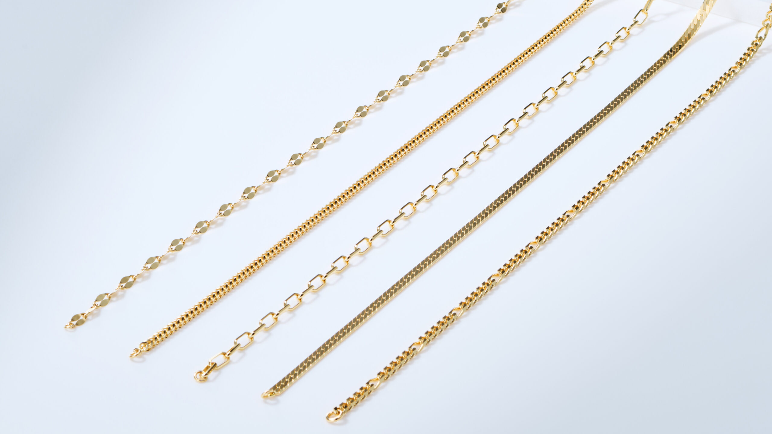 チェーンづくりの難しさの一つは、「同じ設計図でも、素材が変われば別モノになる」という点にあります。K18、K10、K24、プラチナ、見た目の色だけでなく、硬さや粘り、重さ、酸化のしやすさなど、金属の性格はそれぞれに異なります。