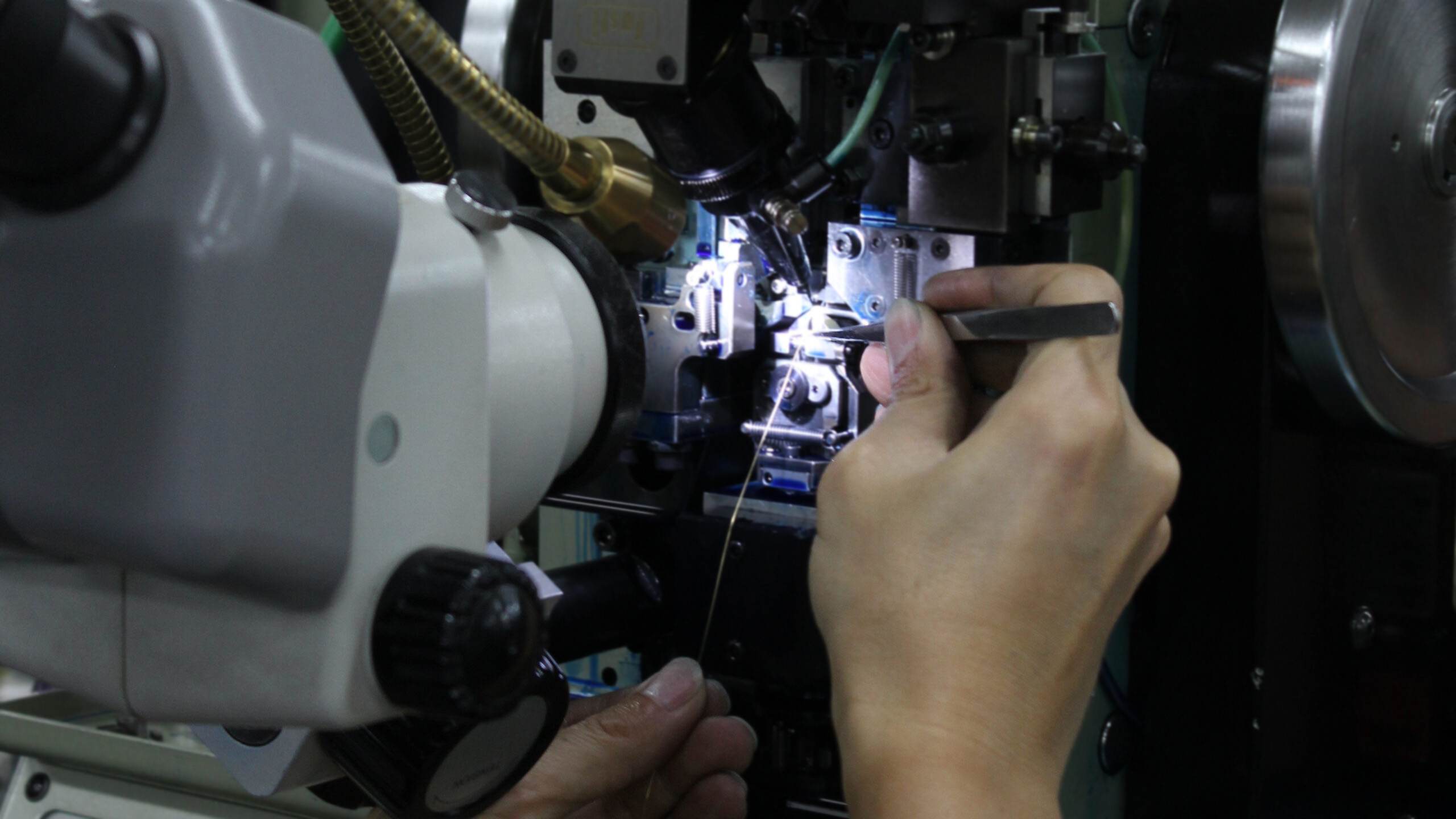 編み機は、見た目こそ似ていても中身は一台一台が別ものです。あるものは極細チェーン専用、あるものは極太喜平専用。さらにその中で、K18用、プラチナ用といった素材別のセッティングがあり、部品の寸法や位置関係は0.01mm単位で調整されています。同じデザイン・同じサイズでも、18金からプラチナへ、10金から24金へと品位が変われば、ワイヤーの滑りや硬さが変わり、最初から条件を組み直す必要が生じます。