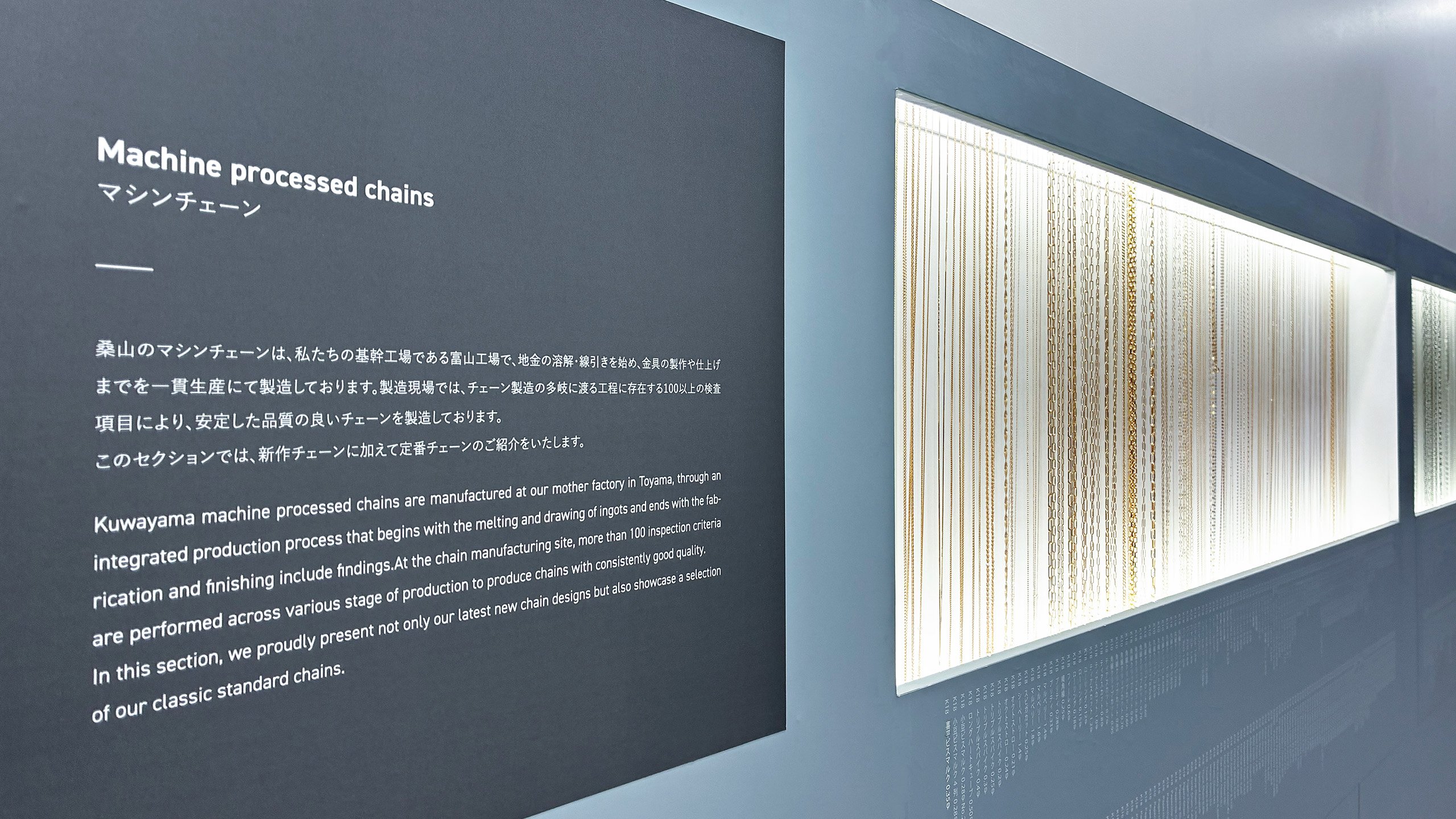 なかでもチェーンは、桑山のアイデンティティを象徴する領域です。その豊富さ自体が、技術基盤、生産の安定性、品質の均質性を物語っています。さらに今回は、各カテゴリーにおいて「いま桑山が強くご提案したい見どころ」をより明確にし、特許申請中の技術など、新たな打ち手も織り込みました。その結果、本展示は単発の新作紹介に留まらず、既存のお取引先様にとっては桑山の強みを“再発見”していただき、需要を掘り起こす契機となることを願い、また、これまでお取引のなかった方や、お取引の機会が限られていたお客様にとっては、桑山のスケール感や対応力を具体的にご理解いただく機会につながっています。