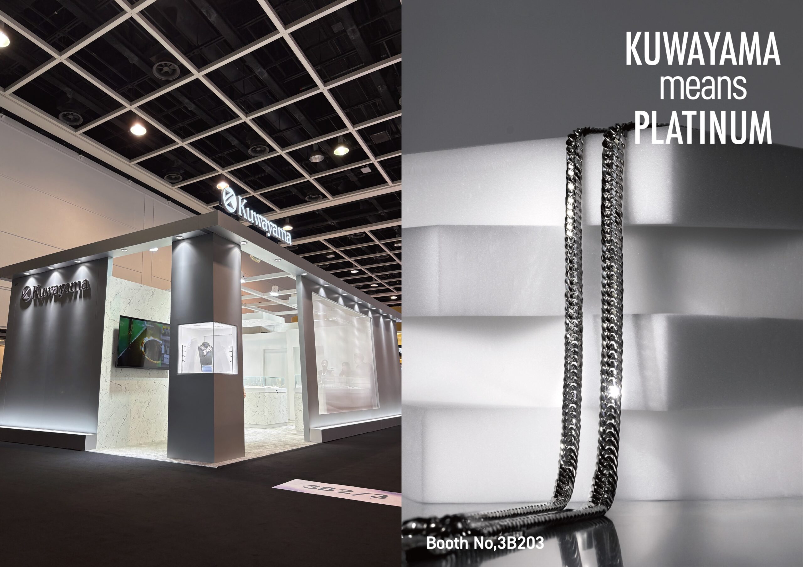 金価格の高騰が続くなか、桑山は今年のテーマをプラチナに明確化。量産での安定品質が難しいこの素材で、マシンチェーン/CNC/キャスト製品を発表し、OEMに応える高い技術力と生産体制を前面に打ち出しました。会期中は悪天候の日もありましたが、桑山のブースは人の流れが絶えず、プラチナを起点に新たなつながりが次々と生まれました。