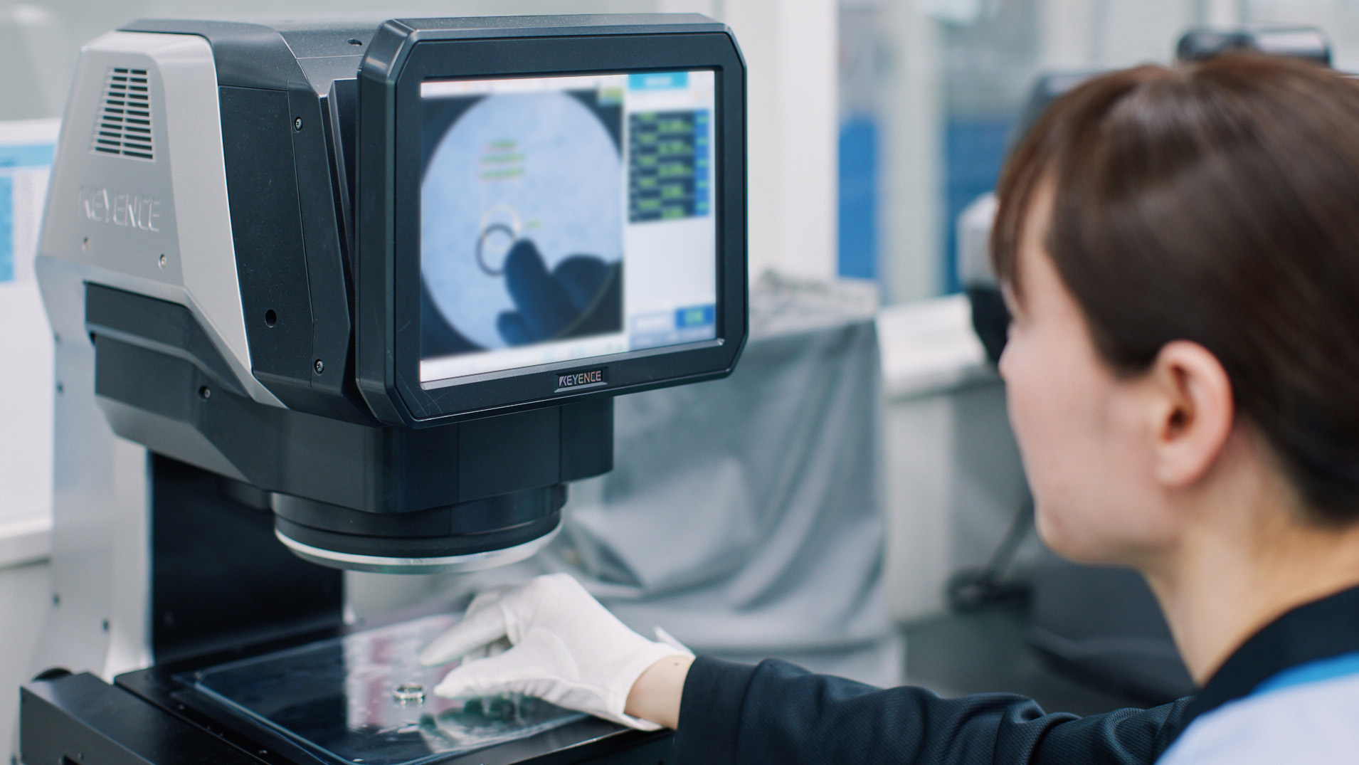 品質確認は、入り口・中間・最終の少なくとも三段階で行われます。旋盤ではリングの幅や厚みを狙い寸法の公差内に収めつつ、内径はサイズ棒による確認だけに頼らず、画像寸法測定器で数値としても管理し、サイズ誤差を極力抑えています。これは、毎日身につけるブライダルリングからこそ、細かなサイズへのこだわりに応えるためです。